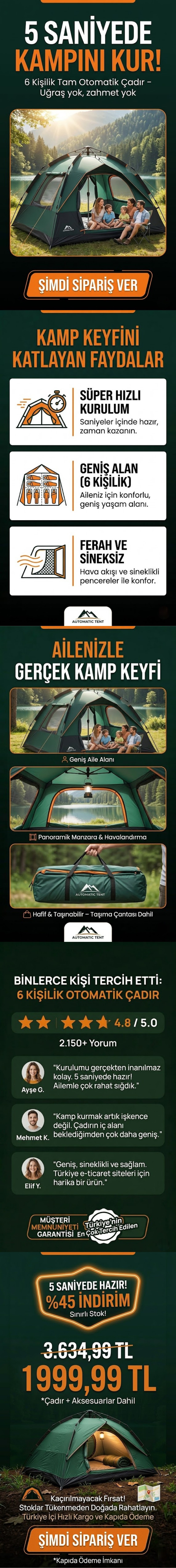 6 Kişilik Otomatik Çadır 1 Adet